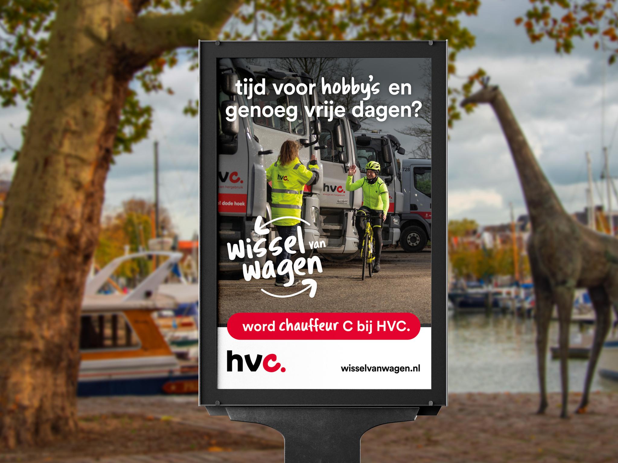 Chauffeurs verdienen namelijk meer dan alleen een goed salaris: meer vrijheid, meer stabiliteit en meer aandacht. Overdag rijden in de regio, op tijd thuis, een hecht team en top arbeidsvoorwaarden — bij HVC is het gewoon goed geregeld. Met een sterke boodschap en creatieve campagne maken we HVC zichtbaar als aantrekkelijke werkgever. En wat moet je dan doen als chauffeur? Van wagen wisselen natuurlijk!