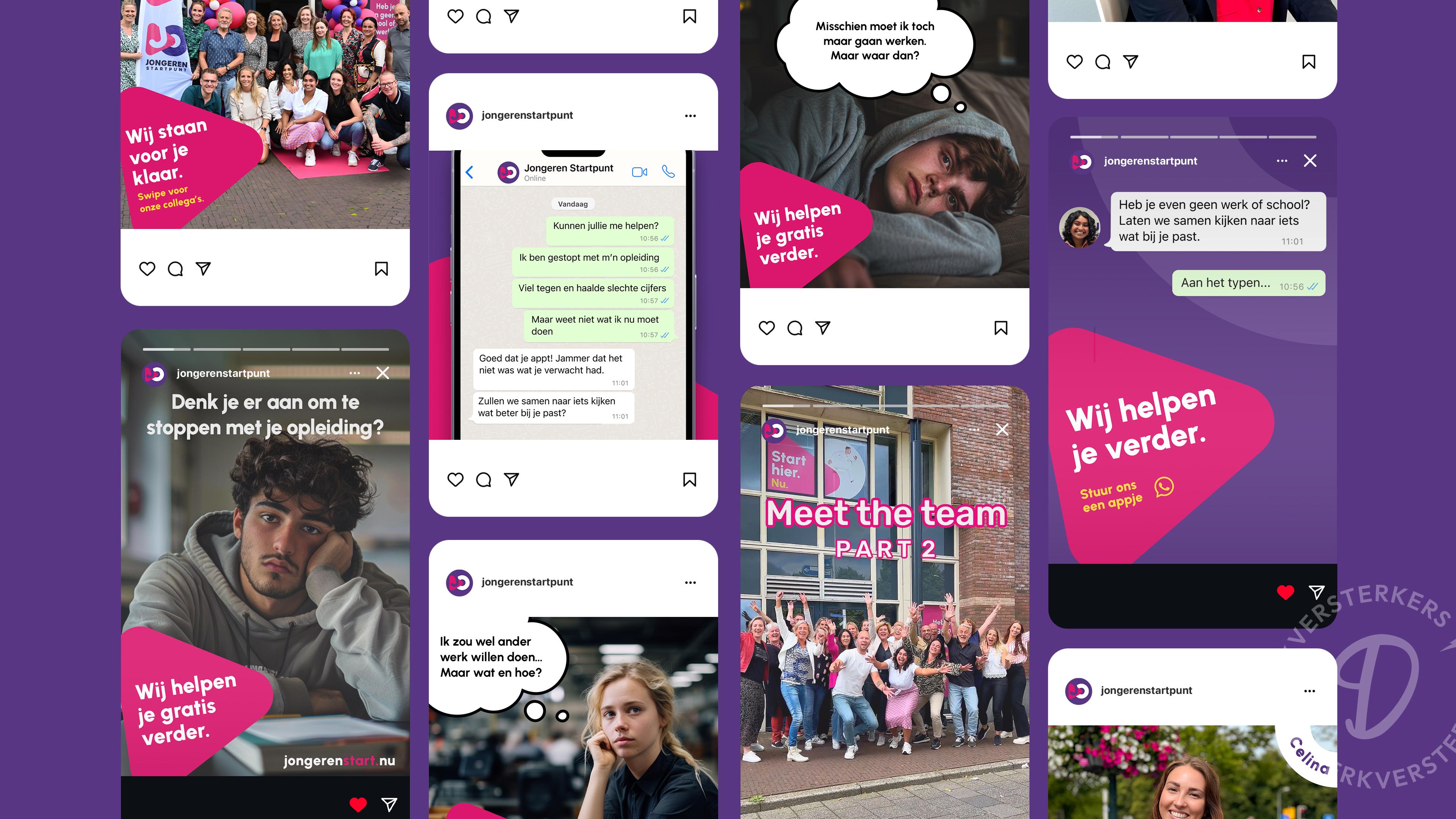 De vraag aan ons: verbeter de uitstraling, maak het herkenbaar en help ons met communicatie. De oude naam Jongerenloket bleek veel te ouderwets te zijn. Tijd voor iets nieuws: Jongeren Startpunt met een nieuwe aantrekkelijke look en bijpassende signing. Vervolgens hebben we op de socials aan de bekendheid gewerkt. Goed nieuws, want intussen weten steeds meer jongeren het Jongeren Startpunt te vinden.