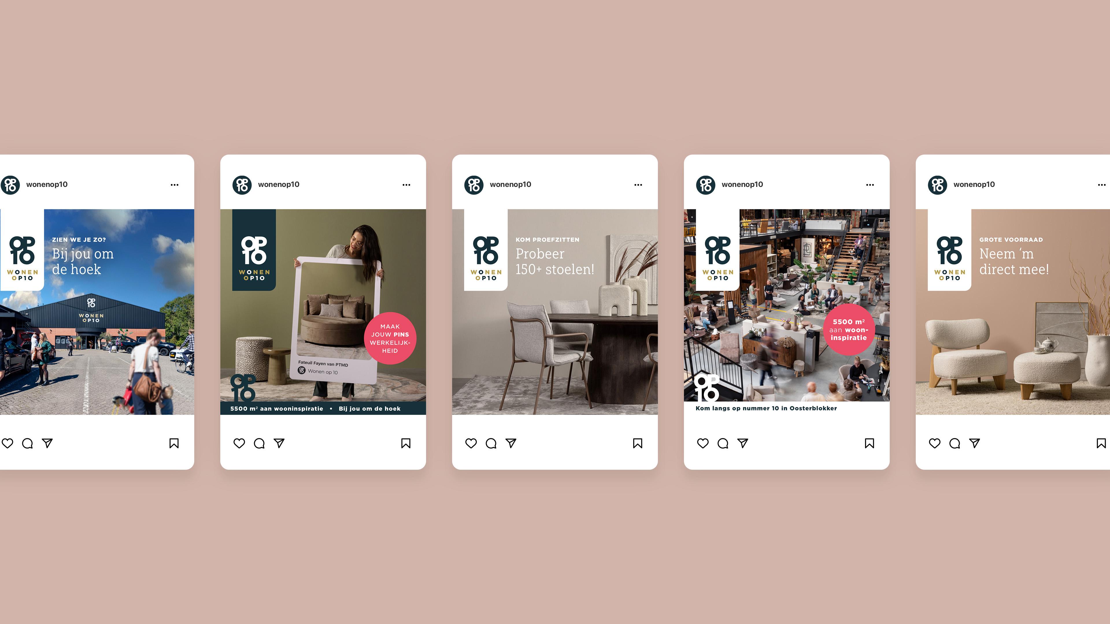 Het oude imago heeft plaatsgemaakt voor een nieuw merk: Wonen op 10. Hiermee spreken we een compleet andere doelgroep aan. Er is bewust gekozen voor geen webshop. Bij Wonen op 10 kun je woonitems bekijken, voelen en uitproberen. Zo koop je alleen waar je écht blij van wordt. Met online campagnes als ‘Kom naar Wonen op 10: 5.000 m² wooninspiratie bij jou om de hoek’ hebben we meer dan 150.000 mensen bereikt, waarvan ruim 10.000 mensen bovenmatig geïnteresseerd zijn in een bezoek.